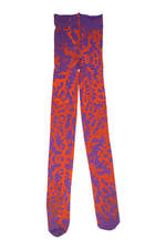 From a distant galaxy of bold colors and unrepeatable patterns, these hand-printed tights bring the energy of an interstellar adventure straight to your wardrobe. Crafted with vibrant purple and orange tones that feel like a cosmic explosion, each pair is totally unique—no two are alike! Durable, stretchy, and hand printed with so much love! These tights are your ticket to a fashion multiverse.