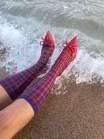 Son adaptables y elásticos con serigrafía roja.Se adapta a todas las tallas 36-43